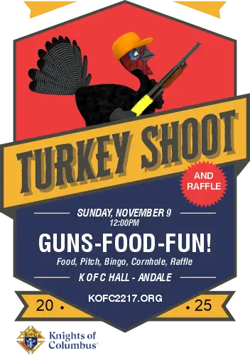 The Turkey Shoot is an annual event organized by the Knights of Columbus Council 2217 to raise funds necessary for our operational costs. This event is vital for maintaining our charitable activities and supporting the community of Andale, KS. By joining us, you contribute to a tradition of service and fellowship that strengthens our parish and local area.